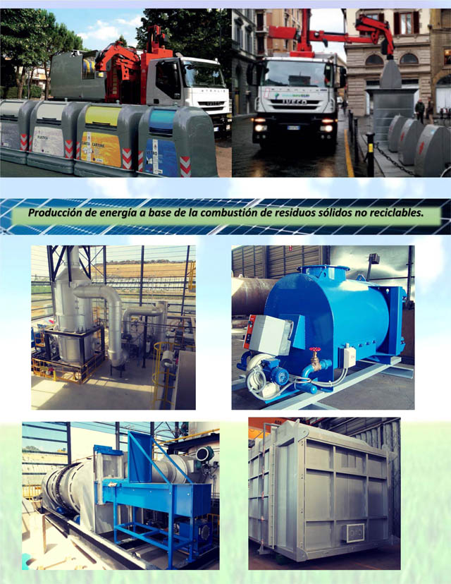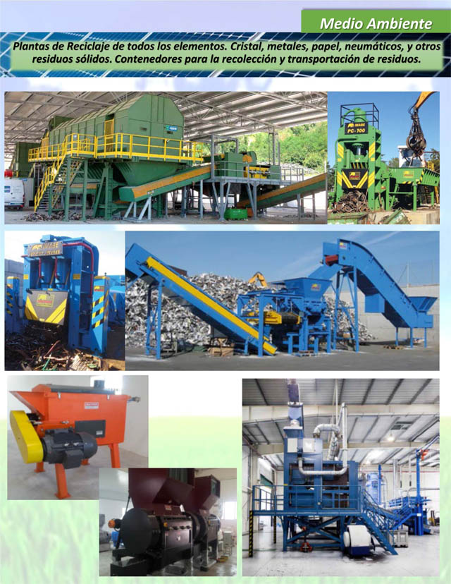 1. Plantas de Reciclaje de todos los elementos. Cristal, metales, papel, neumáticos, y otros residuos sólidos. Contenedores para la recolección y transportación de residuos.