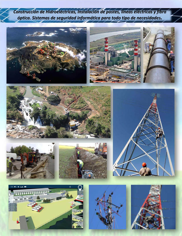 4. Construcción de Hidroeléctricas, Instalación de postes, líneas eléctricas y fibra óptica. Sistemas de seguridad informática para todo tipo de necesidades.
